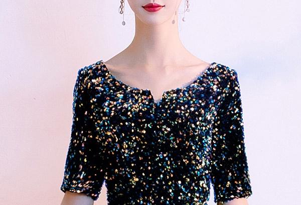 【送料無料】パーティードレス フィッシュテール 二次会 結婚式 ワンピース 大人 ピアノ 発表会 結婚式 母親 ドレス フォーマル 5分袖 スリットネック Aライン 披露宴