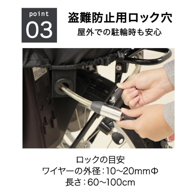 ・2カ所にワイヤーロック用穴付きでカバーと一緒に盗難防止