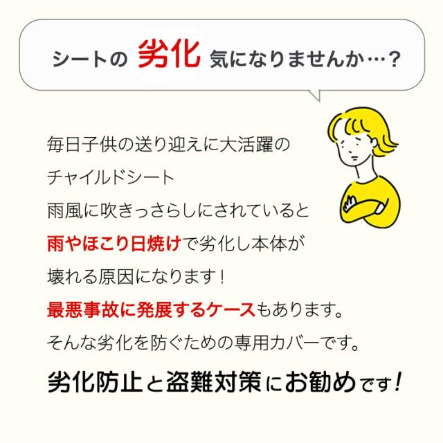 雨やほこりから子供乗せを守る保護カバーです。上から被せるだけの簡単取り付けのシートカバーです。 |