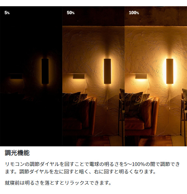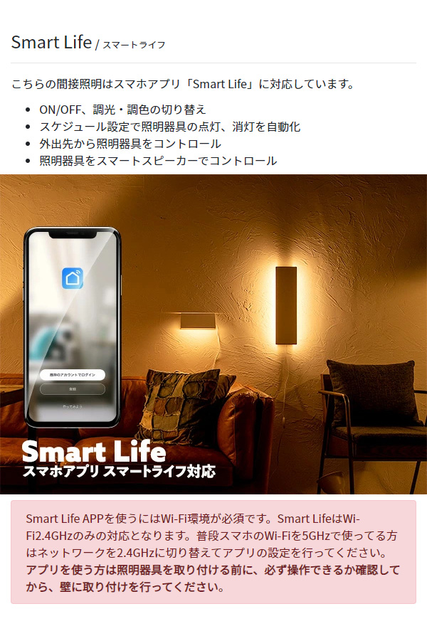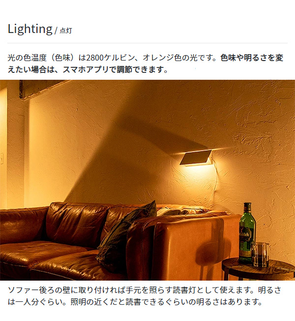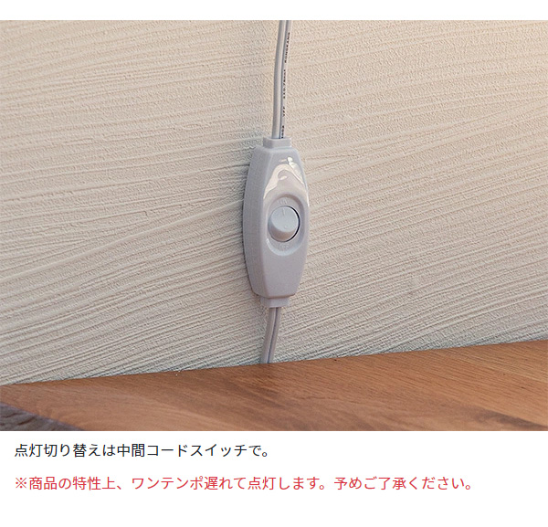 ●点灯方式:中間コードスイッチ、スマホアプリ、ルームスイッチリモコン対応(別売)※中間コードスイッチまたは壁スイッチで点灯した場合、点灯するまでに2秒ほどブランクがあります。