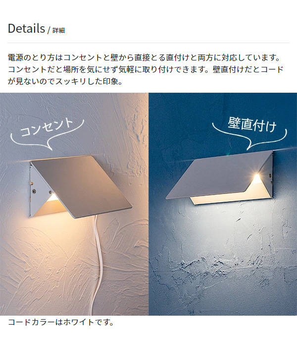 クリルS ホワイト LED ブラケットライト クリルS ウォールライト 壁 照明 ライト 壁付 壁直付け コンセント 対応 スリム(代引不可)【送料