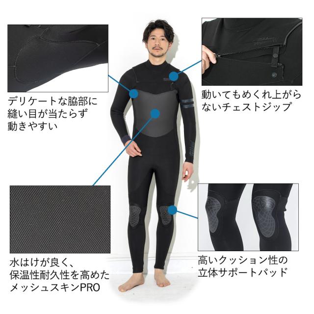 FELLOW ウェットスーツ フルスーツ メンズ 3mm ノンジップ サーフィン スキン ジャーフル 日本規格