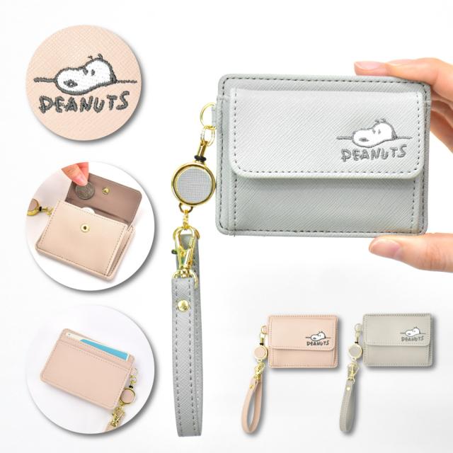 SNOOPY 小銭入れ 外側 リール ミニ財布 カード収納 2枚 パスケース 小型 ICカード(Suica PiTaPa ICOCA) 通勤 通学 お礼 お祝い 贈り物 ギフト 母の日ギフト 母の日 プレゼント ラッピング