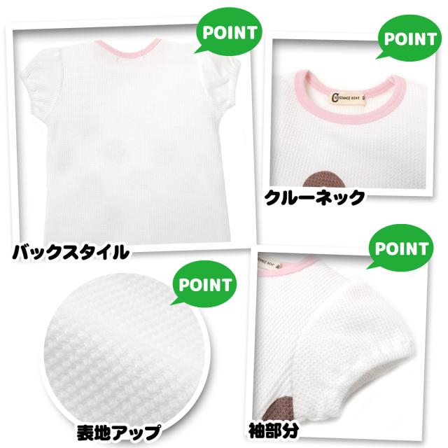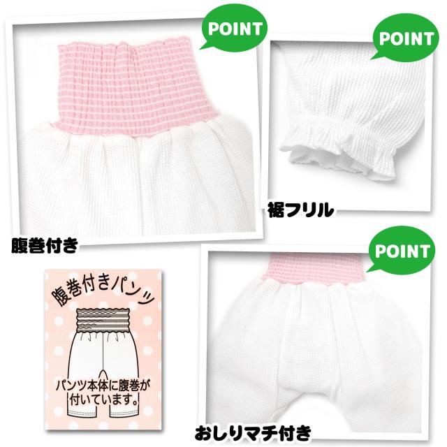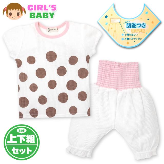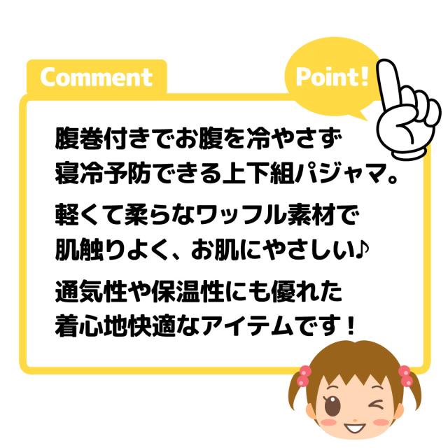 【送料無料】女児 ベビー 半袖 パジャマ 上下組 寝冷予防 腹巻付き ワッフル 子供服 女の子 80cm 90cm 95cm iw-0193a【メール便対応】