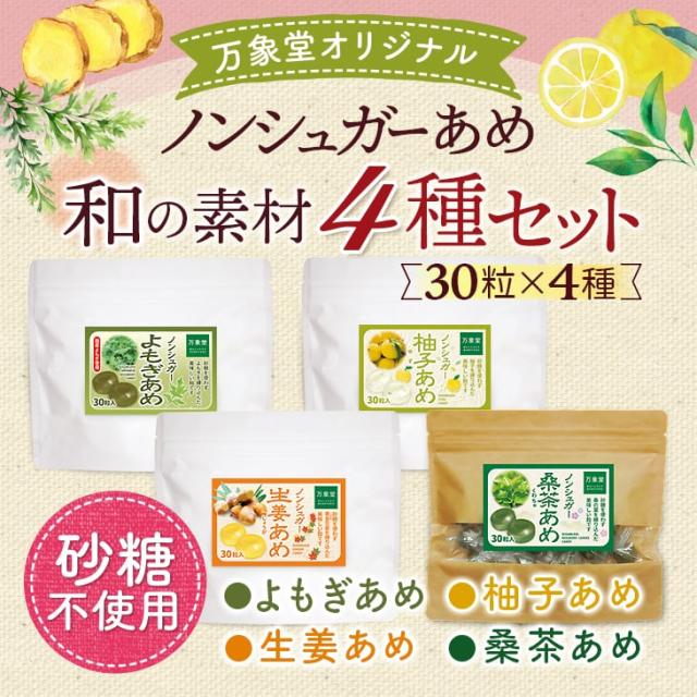 シュガーレス 飴 送料無料 キャンディー 30粒 和の素材4種セット ギフト ノンシュガー のど飴 のどあめ 砂糖不使用