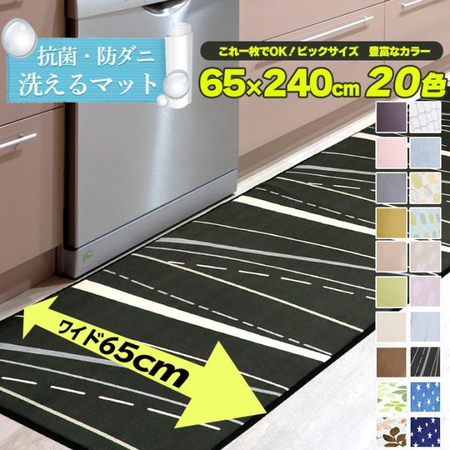 キッチンマット 洗える 65×240cm 滑り止め付 西海岸 マット カーペット オールシーズン可 フランネル ウォッシャブル マイクロファイバー 玄関マット 240 北欧 秋 冬 用 おしゃれ