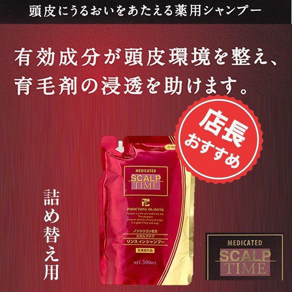 「スカルプタイム 詰め替え」500ml スカルプシャンプー ノンシリコン ピロクトンオラミン配合 薬用リンス イン シャンプー