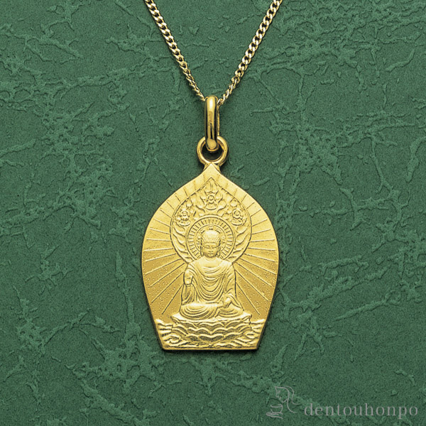 「送料無料」 十八金製 お守りご本尊ペンダント 釈迦如来 K18チェーン付 ( 光則(金工芸) おしゃれ ジュエリー )
