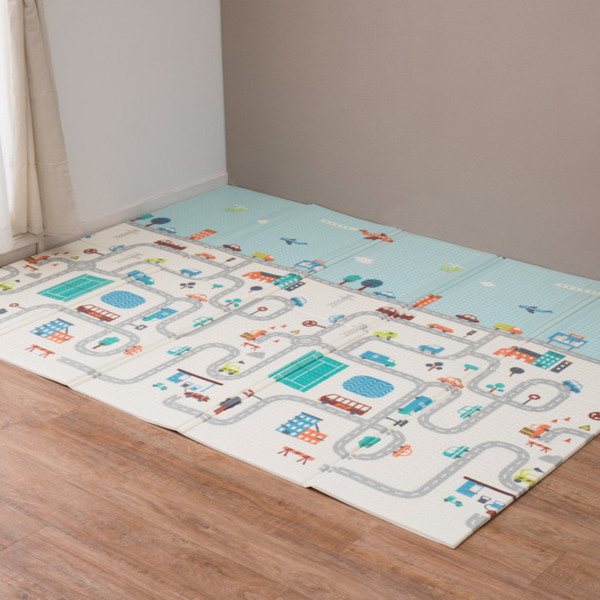 柔らかく適度な弾力があり、お子さまの遊びスペースやおむつ替えの際などに活躍します。道路の絵柄なので、おもちゃの車などを走らせて遊ぶことも出来ます。