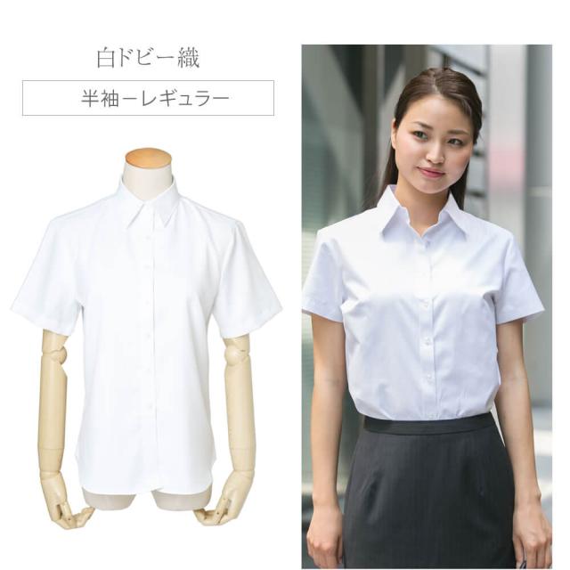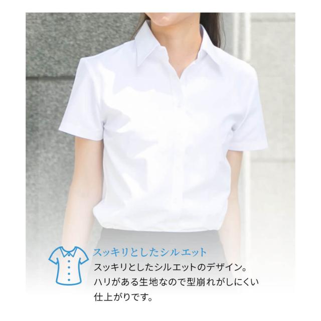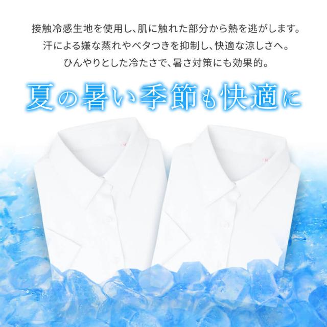 レディース 半袖 ブラウス 接触冷感 シャツ オフィス 白ドビー 【2枚の場合は2通で発送】/sun-ls-bl-1887【メール便で送料無料】【10】ワイシャツ制服 就活