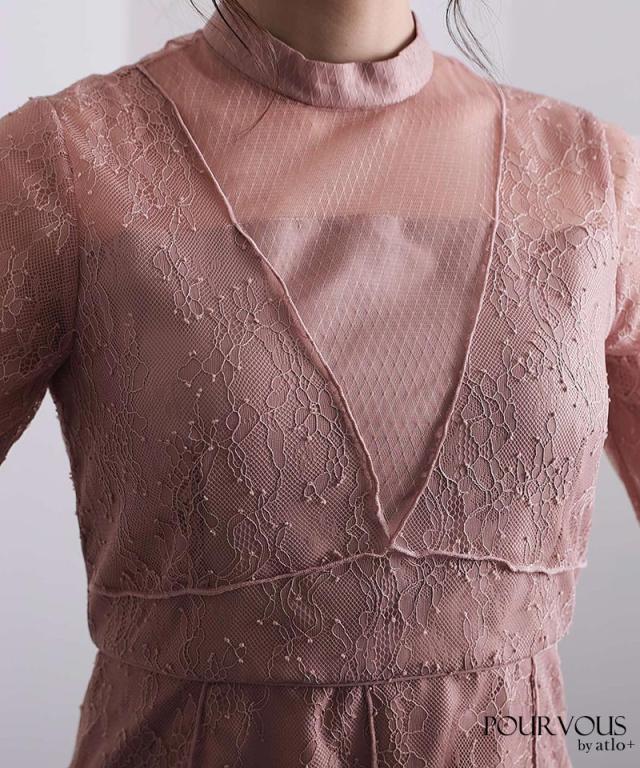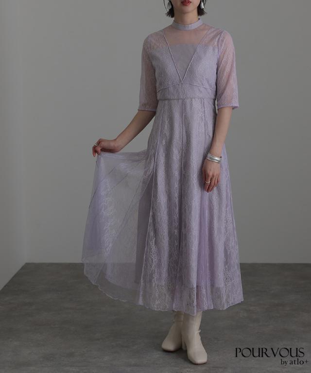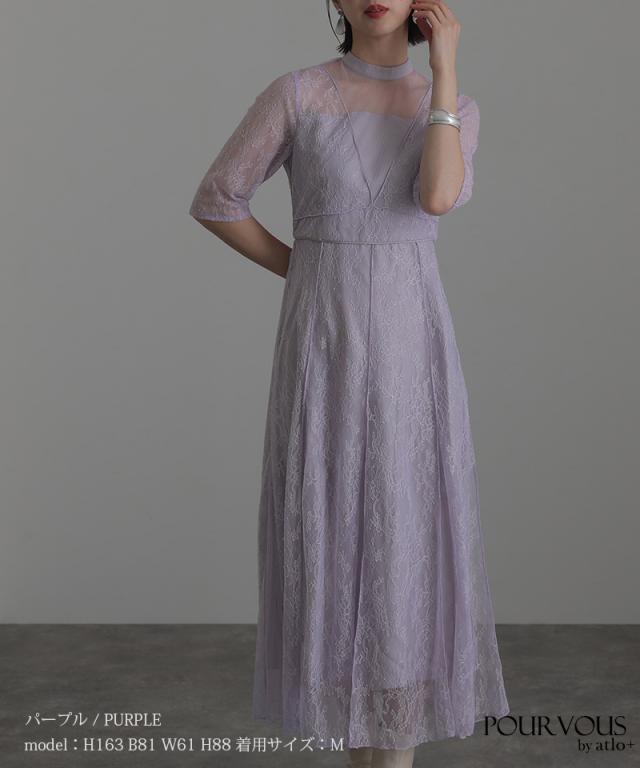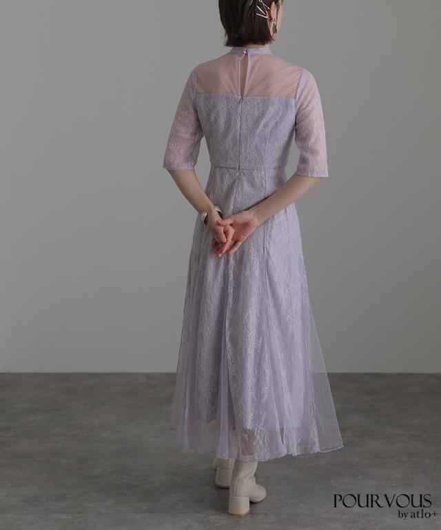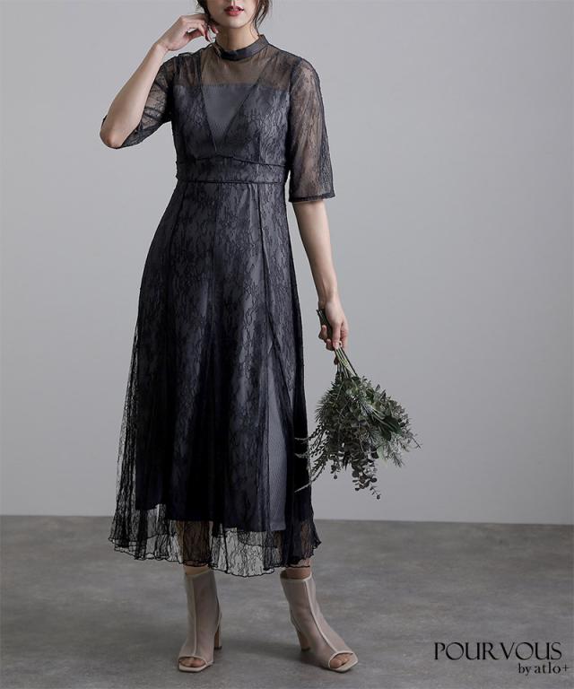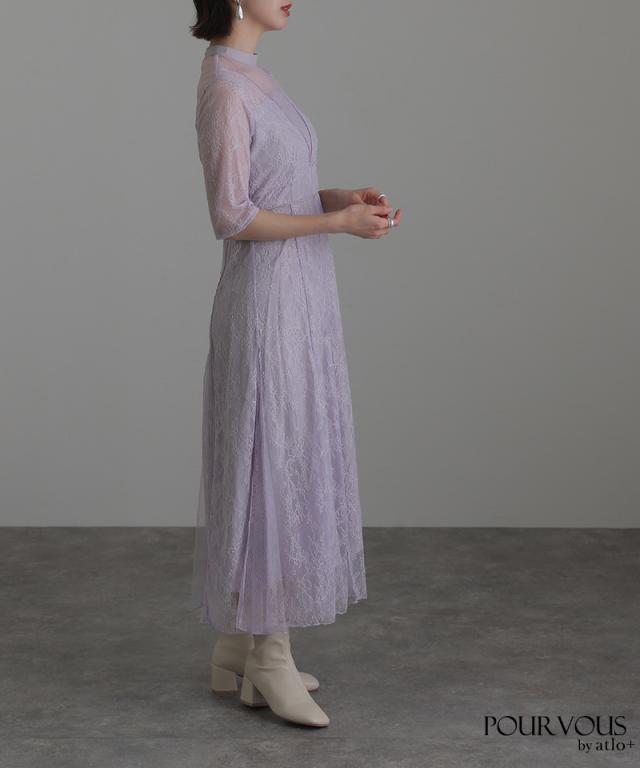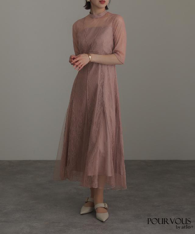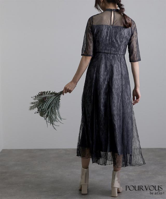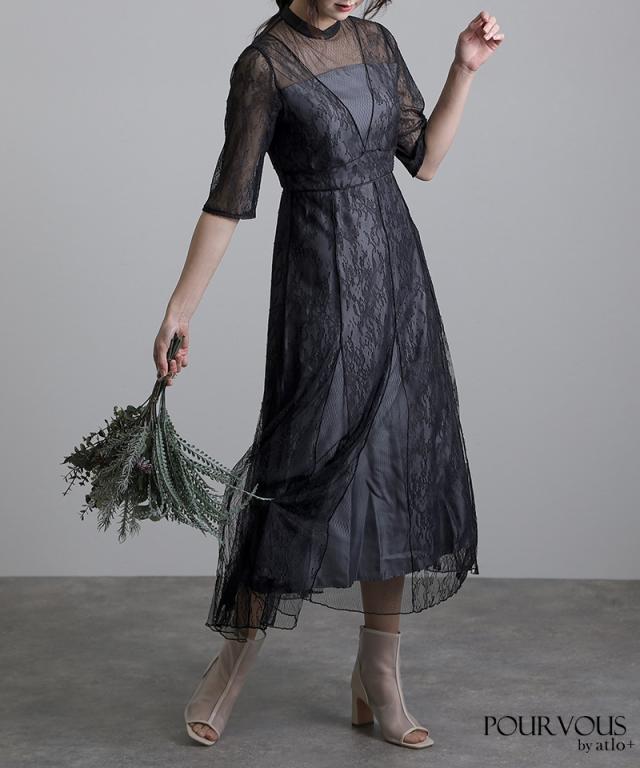 Vラインメロウレースワンピース【617211510】 10代・20代・30代・40代・50代ドレスワンピ・服装・ワンピース・フォーマルワンピ・ドレスカジュアル・ブランド・半袖・七分袖・長袖・袖あり・ロング・ショート・ミニ・膝丈・薄手・厚手・無地・脚長効果・伸縮性・キレイめ・着やせ・体型カバー・スタイルアップ・ドレープ・キーネックライン・モード・小さいサイズ・3Lや4L・かっこいい、かわいい・即日発送・送料無料・結婚式・婚活・披露宴・顔合わせ・発表会・演奏会・二次会・同窓会・お呼ばれ・食事会・謝恩会・親族・七五三・お宮参り・冠婚葬祭・弔事・女子会・韓国・デート・入学式・卒業式・入園式・卒園式・ママ・ピアノ・マタニティー・セレモニー・セレブ・パーティー