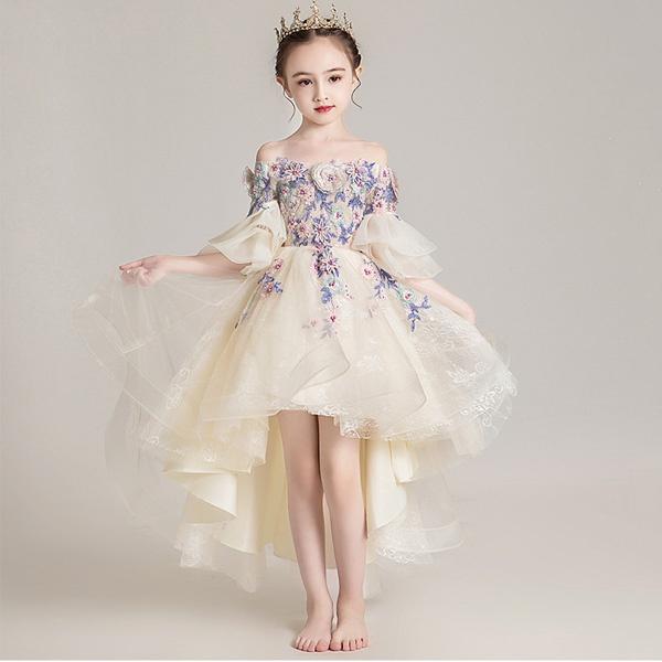 子供ドレス 子供服 長袖 上品 秋冬 女の子 上品 フィッシュテール ワンピース オフショルダー 可愛い 子供 フォーマル ピアノ 発表会 お姫様シャンパン ファスナータイプ dt150y7y7s3