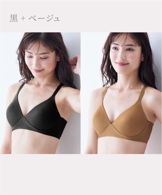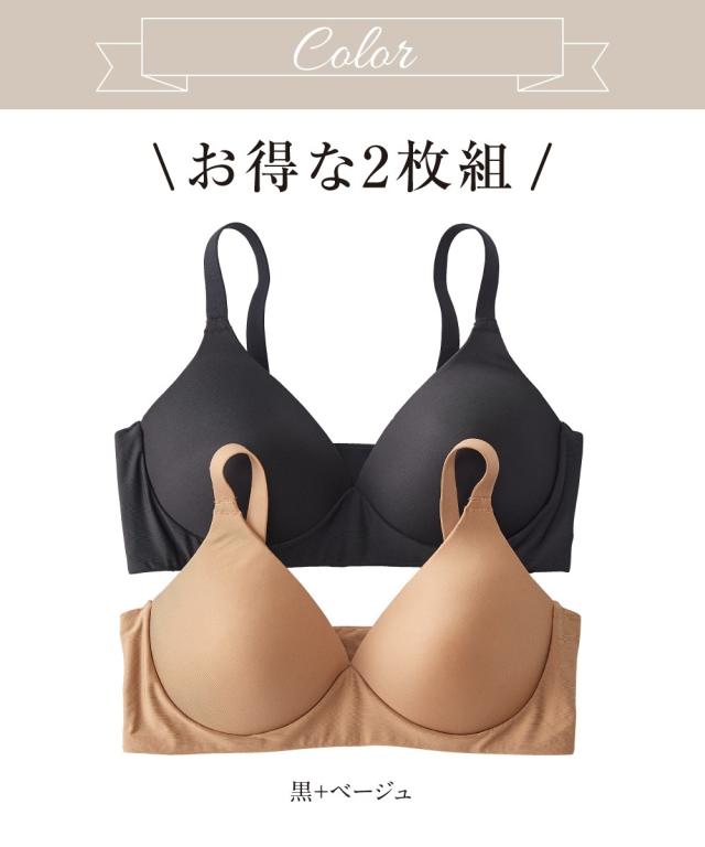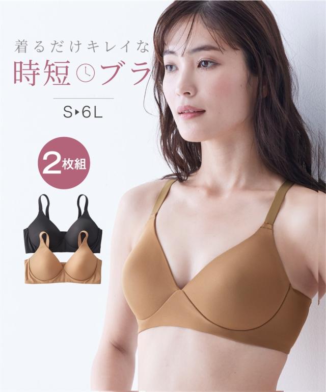 ブラジャー ノンワイヤー レディース 時短3秒ブラ 2枚組 ホック無し シームレスタイプ 黒+ベージュ S/M/L/LL/3L ニッセン nissen