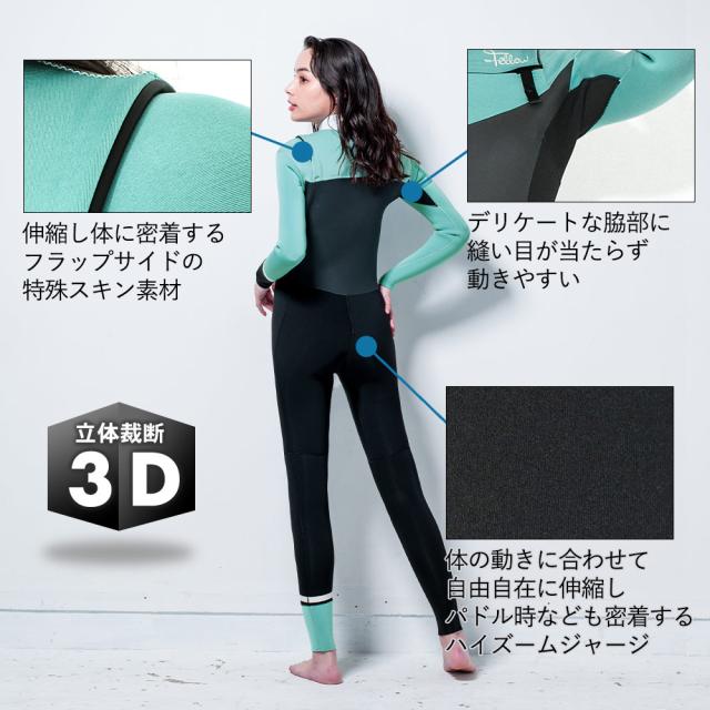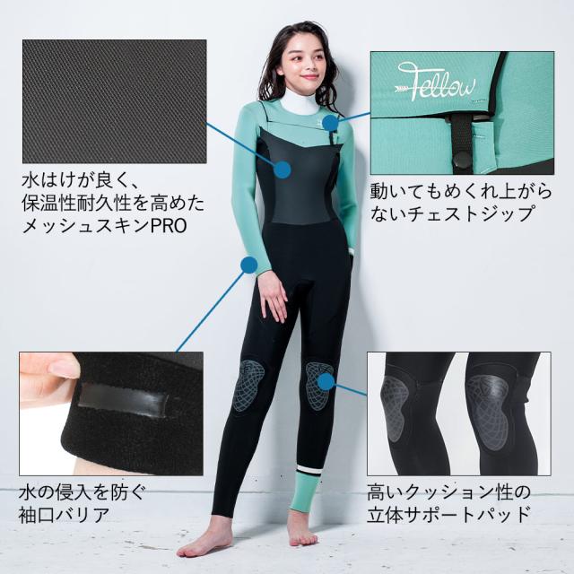 FELLOW ウェットスーツ フルスーツ レディース チェストジップ 3mm ジャージ スキン サーフィン JPSA 日本規格