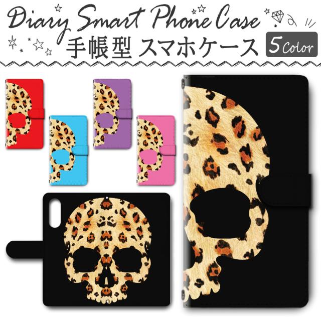 スマホケース スマホ ケース スマホカバー スマホ カバー 手帳型 Rakuten Hand 対応 送料無料 ドクロ ヒョウ柄 / dc-046