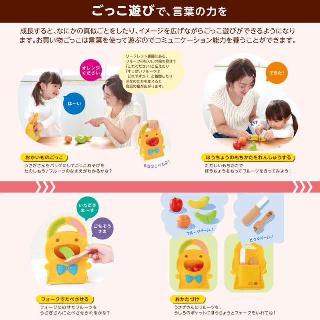 まだ、包丁やスプーンが使えないお子様でもポットンおとしのように遊べますので、幅広い年齢のお子様に楽しんでいただけます。