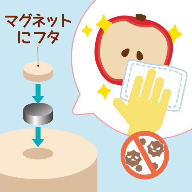ふしぎなマグネット。くっつくフォークで食べさせる遊びが楽します。