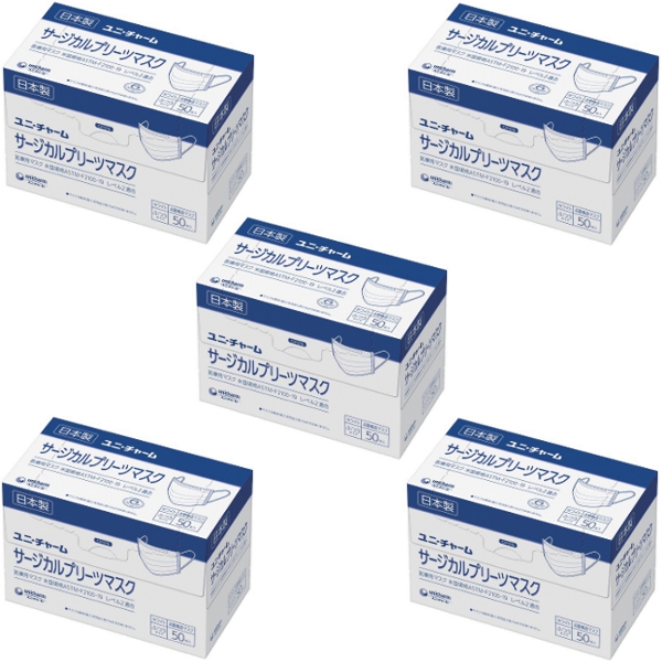 ユニチャーム サージカルプリーツマスク ふつうサイズ ホワイト 50枚×5箱セット