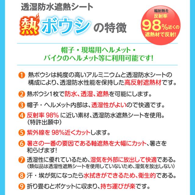熱ボウシ 帽子やヘルメットに入れる 熱ボウシシート 熱ぼうし 熱中症対策 熱中症 予防 暑さ対策 帽子シート 遮熱シート (am-nb01)【メール便送料無料】 紫外線98%カット 通気性良好 透湿性能 むれにくい 防水 帽子に押し込むだけ ワンタッチ取付 agesugi_snk