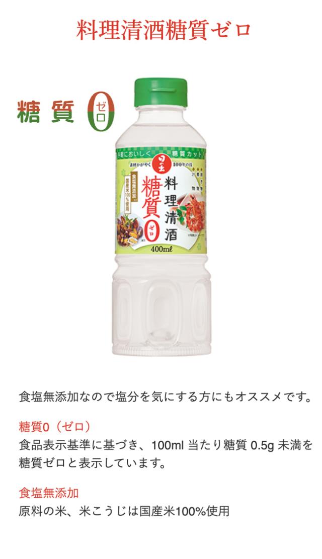 含まれている糖質を0(ゼロ)(※)にした、アルコール分13度以上14度未満の健康志向の料理清酒(食塩無添加〜酒税対象品〜)です。原料の米、米こうじは国産米を100%使用しております。アルコールや有機酸により肉や魚の臭みを消し風味よく仕上げ、おいしく糖質コントロールしたい方におすすめです。