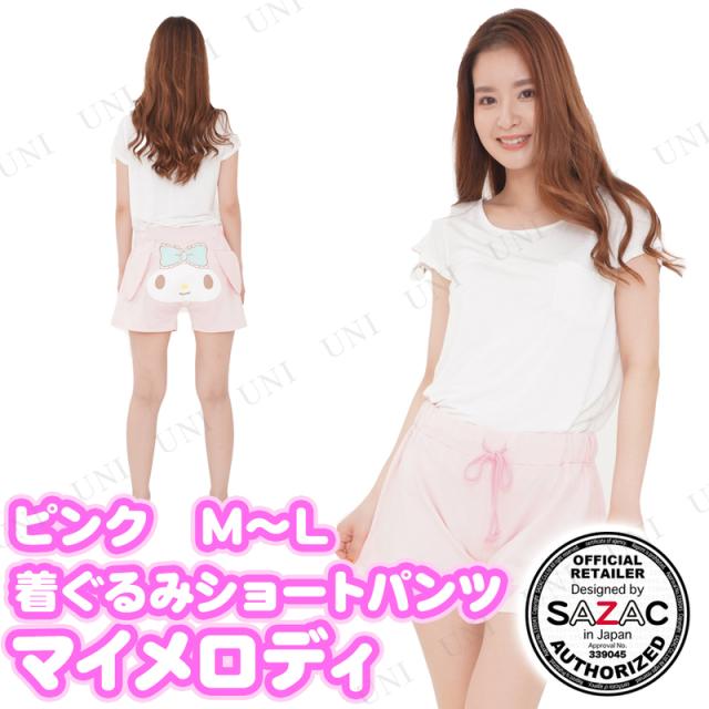SAZAC(サザック) マイメロディ着ぐるみショートパンツ ピンク レディスM~L サンリオ レディースファッション ルームウェア 女性 お尻部分がマイメロディの顔 パステルカラー サイドから垂れ下がった耳
