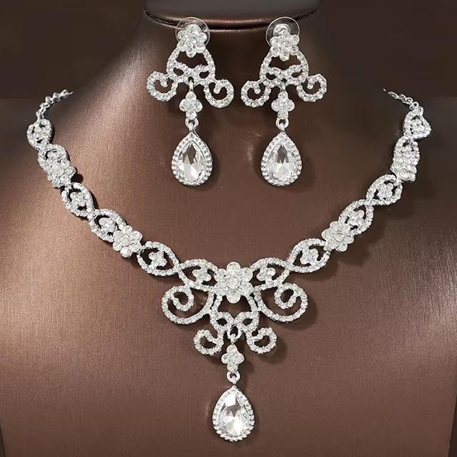 シャンデリアクリスタルブライダルジュエリーセット(ピアス&ネックレス) 首飾り チョーカー レディース 結婚式 パーティ 20G 20ゲージ ラインストーン ジルコニア 妃 姫 披露宴 ドレス プレゼント ウエディング コスプレ 衣装 発表会 花飾り ウェディング 記念写真