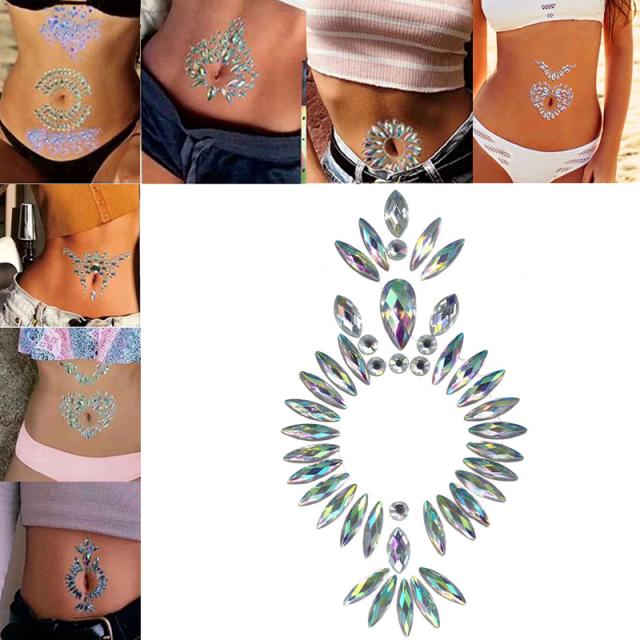 おへその周りをデコレーションのように飾れるようにデザインされたボディジェムステッカー。