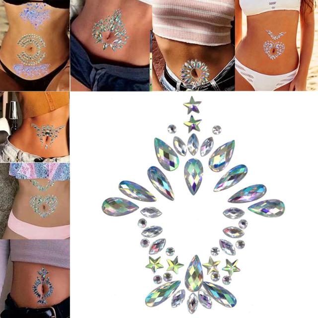 おへその周りをデコレーションのように飾れるようにデザインされたボディジェムステッカー。