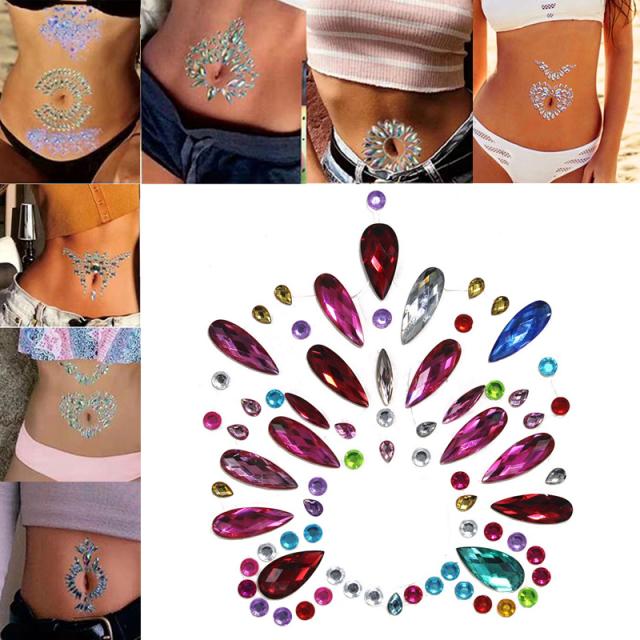 おへその周りをデコレーションのように飾れるようにデザインされたボディジェムステッカー。