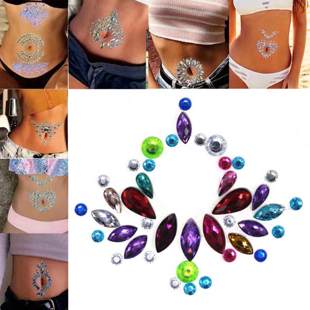 おへその周りをデコレーションのように飾れるようにデザインされたボディジェムステッカー。