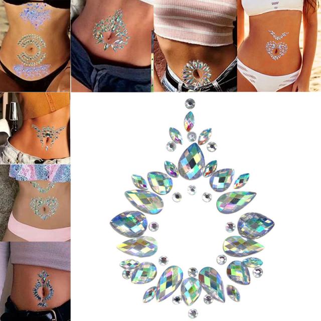 おへその周りをデコレーションのように飾れるようにデザインされたボディジェムステッカー。