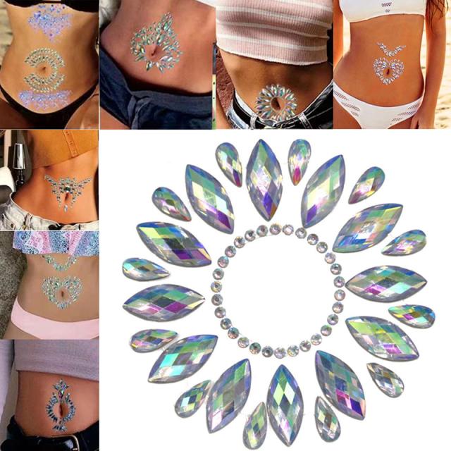 おへその周りをデコレーションのように飾れるようにデザインされたボディジェムステッカー。