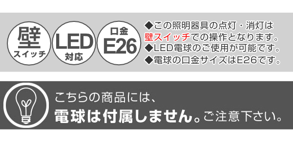 | 注意事項 | ※ダクトレール専用の照明器具です。 ※こちらの商品には、電球は付属しません。 白熱電球、電球型蛍光灯、LED電球使用可 【対応電球】E26 60W以下(1個) |