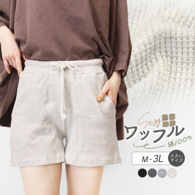 ルームパンツ レディース 綿100% ショートパンツ ルームウェア 大きいサイズ ゆったり ワッフル 無地 部屋着 パジャマ 春夏 *y3-1t
