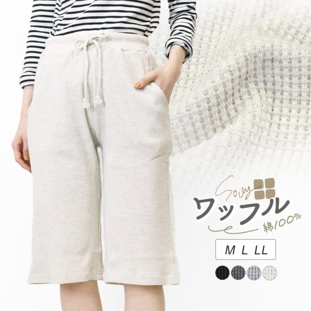 ルームパンツ レディース 綿100% ルームウェア ハーフパンツ ワッフル コットン 大きいサイズ ゆったり 無地 ポケット かわいい *y3-1t