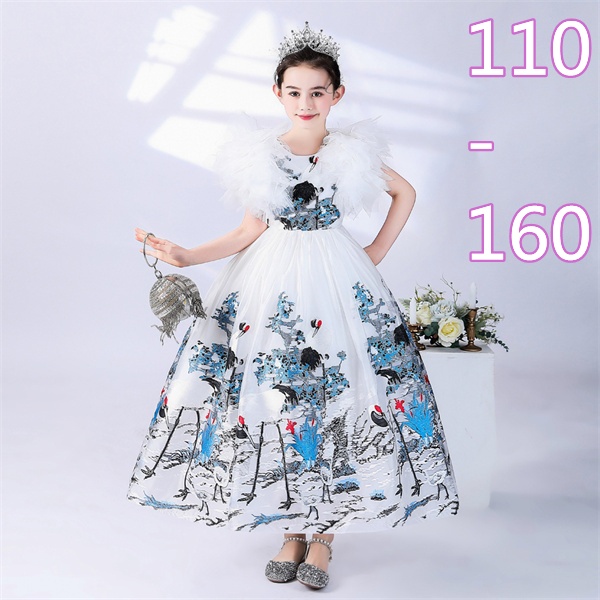【送料無料】鶴柄 キッズドレス 子どもドレス 女の子 フォーマル 結婚式 子供服 キッズ ジュニア ドレス ワンピース 七五三 ピアノ発表会 パーティードレス 110 120 130 140 150 160