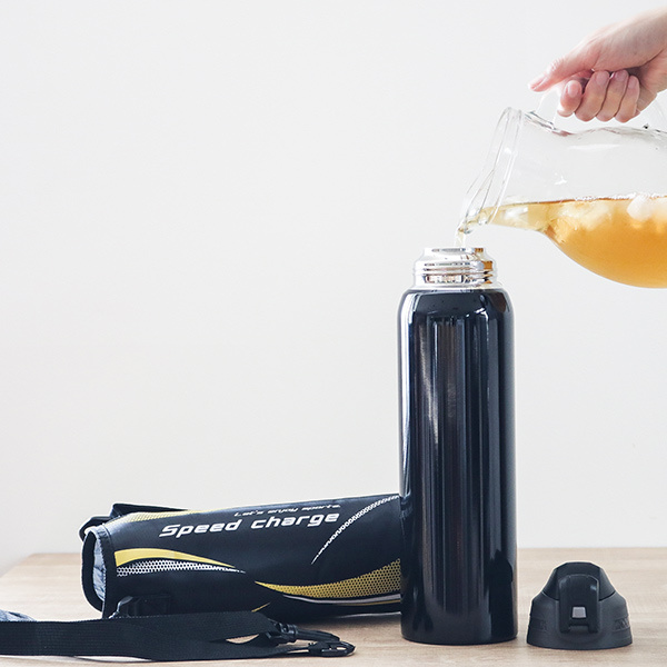 カバーを外した水筒本体にもブラックの色が付いており、カバーを外して使用してもおしゃれです。その日の気分によってカバーを付けて使ったり、カバーを外してお使いいただくことができます。