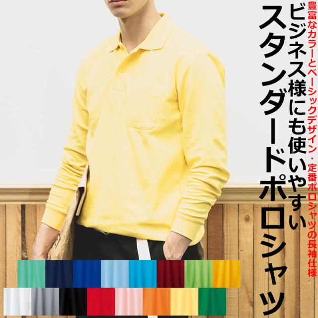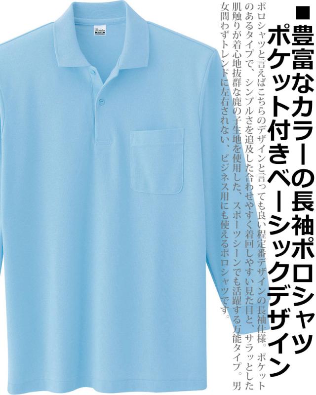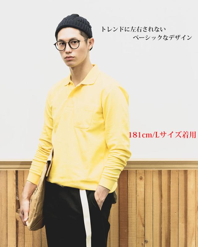 5.8oz スタンダード カジュアル ポロシャツ 長袖ポロシャツ メンズ ポケット付き ゴルフ ビジネス テレワーク 無地
