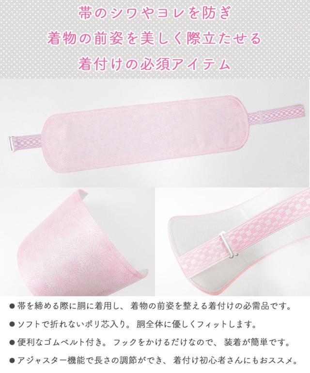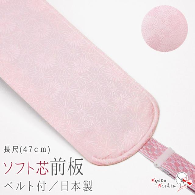 前板 帯板 ソフト芯 47cm 長尺用 ベルト付前板 あづま姿 日本製 着付け小物 レーヨン100% レディース 女性 着物 成人式 振袖 留袖 訪問着 袴 浴衣 菊柄 柄入り ピンク