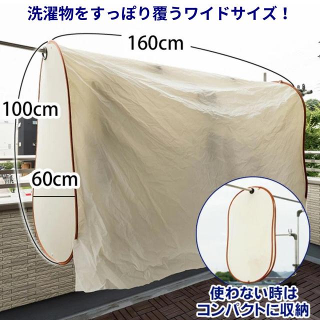 洗濯物保護カバー 洗濯日和ネクスト ワイド 幅160cm ベージュ 洗濯物カバー 雨よけ 花粉よけ 洗濯 目隠し ベランダ 黄砂 虫除け UV 屋外 梅雨対策