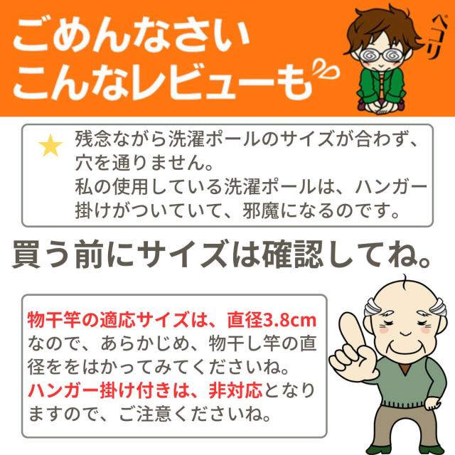 ハンガー掛け付きの物干し竿は、ご使用いただけないのでご注意ください。