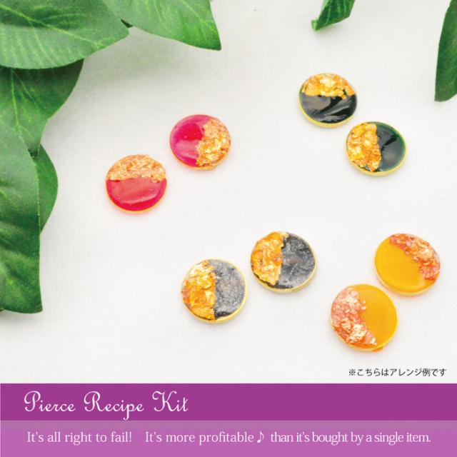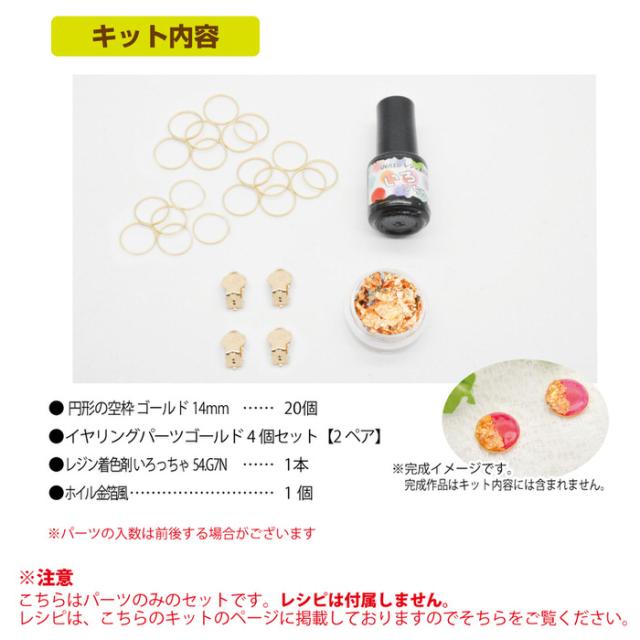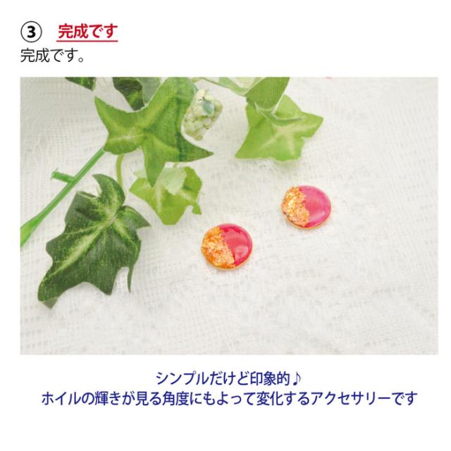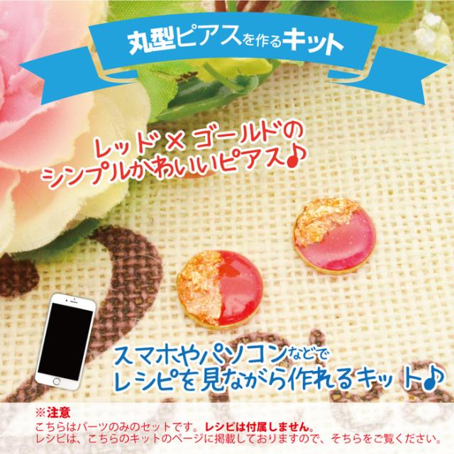 レッド&ゴールド丸形ピアスを作るキット | 丸型 ホイル 着色剤 ピアス キット レジン アクセサリー 材料 素材 パーツ