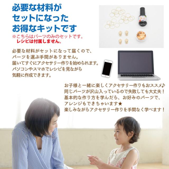 ■商品説明:アクセサリーパーツを作るのに必要なパーツがセットになったお得なレシピキット(アクセサリーセット、レシピキット)です。単品で買うよりもお得なセット価格になっています。