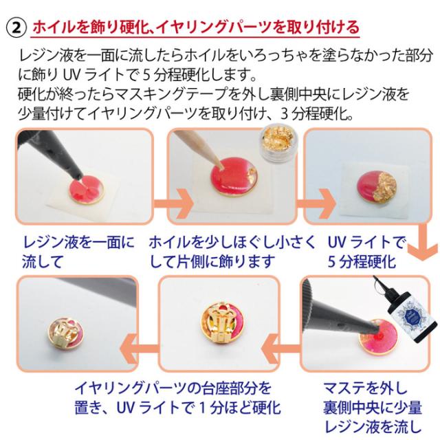 レッド&ゴールド丸形ピアスを作るキット | 丸型 ホイル 着色剤 ピアス 手作り レジン パーツ 材料 UVレジン キット デザイン ハンドメイド 手芸 アクセサリー 素材 かわいい 大人 おしゃれ