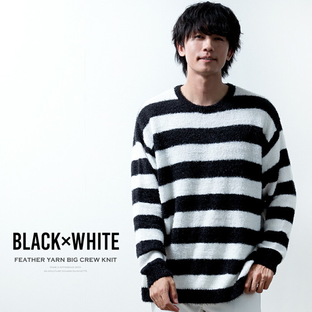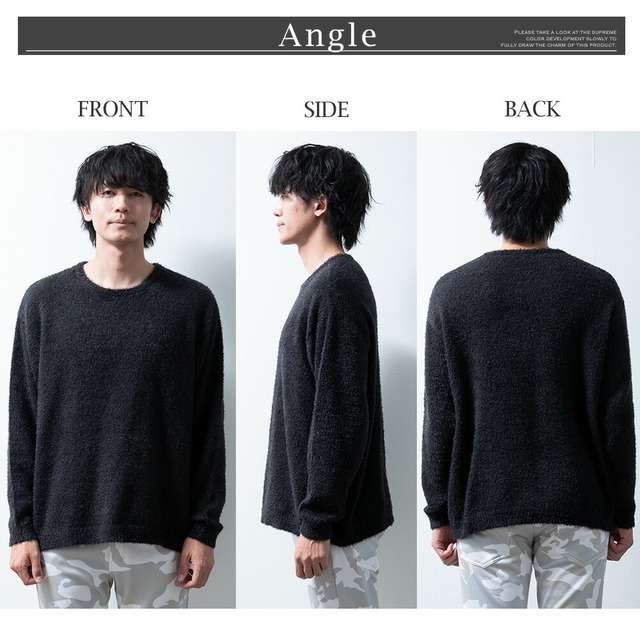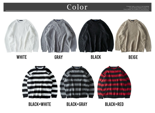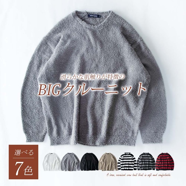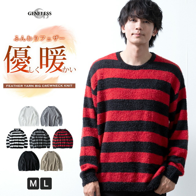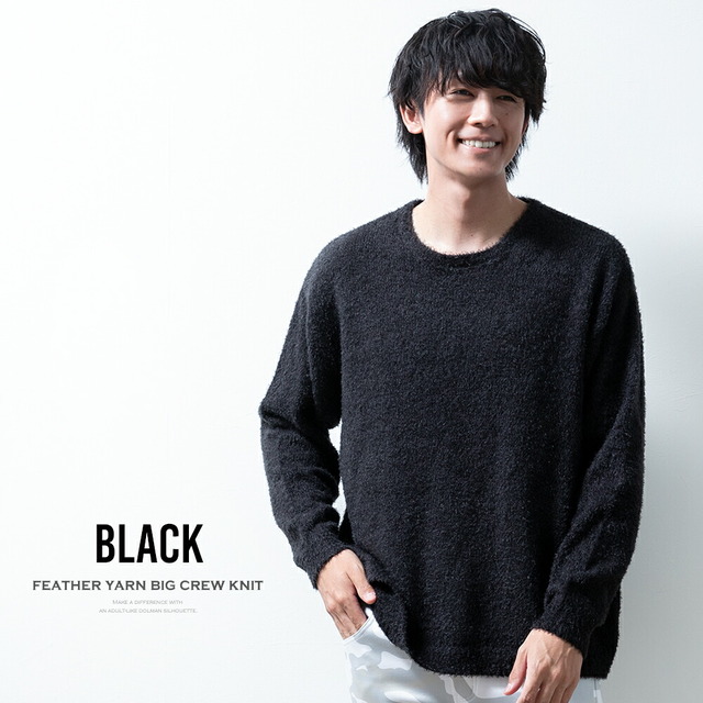 ニット メンズ フェザーヤーン 柔らかい メンズニット 暖かい 秋冬 クルーネック ゆったり セーター トップス カジュアル 無地 オーバーサイズ 全7色 ブラック×グレー ビッグシルエット お洒落 シンプル JP128001 ホワイト プレゼント