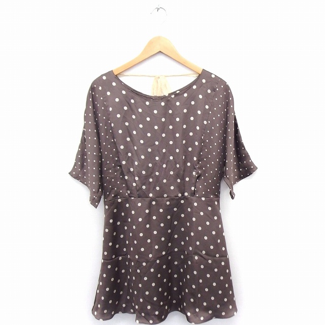 【中古】ボンメルスリー BON MERCERIE ワンピース ドット柄 レースリボン フレア 五分袖 ひざ丈 38 ブラウン 茶 /FT7