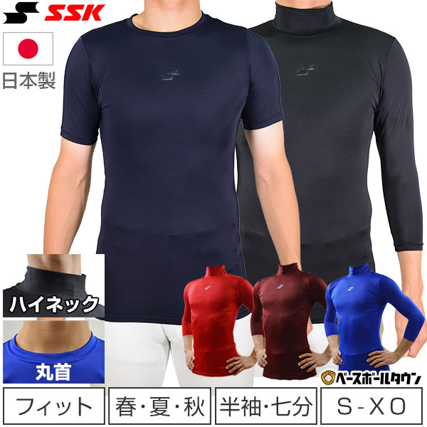 野球 アンダーシャツ 日本製 SSK フィット ローネック 丸首 ハイネック 半袖 7分袖 一般用 オールシーズン 限定 BU1516 メール便可 ウェア 野球アンダー