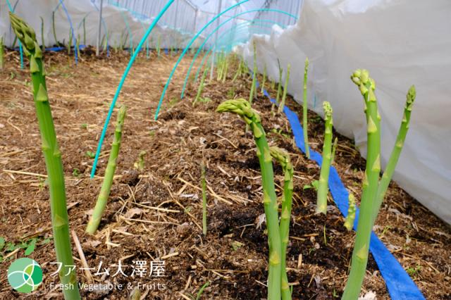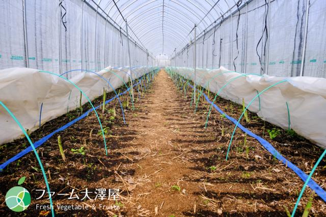 この地の生産者・浦野さんの農園には、たくさんのハウスが建ち並び、ていねいに育てられたアスパラガスたちがすくすくと育っています。