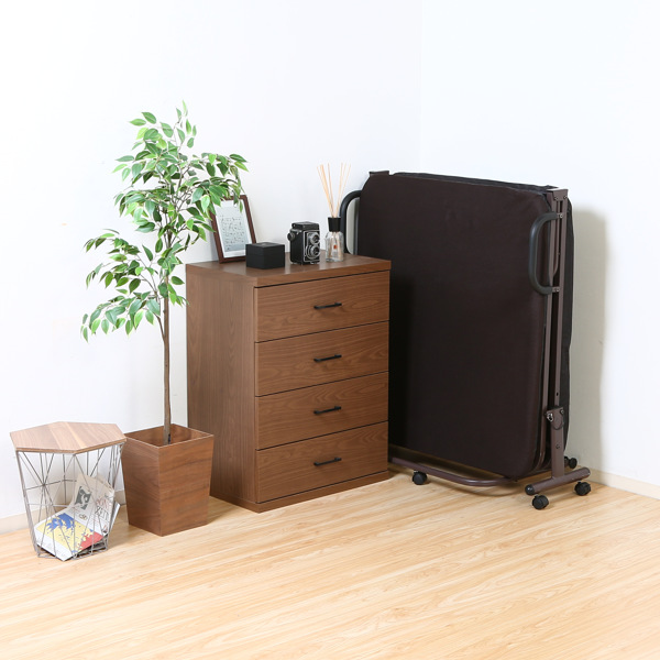 ベッドを折りたたむとスリムに収納できて、お部屋を広々と使えます。