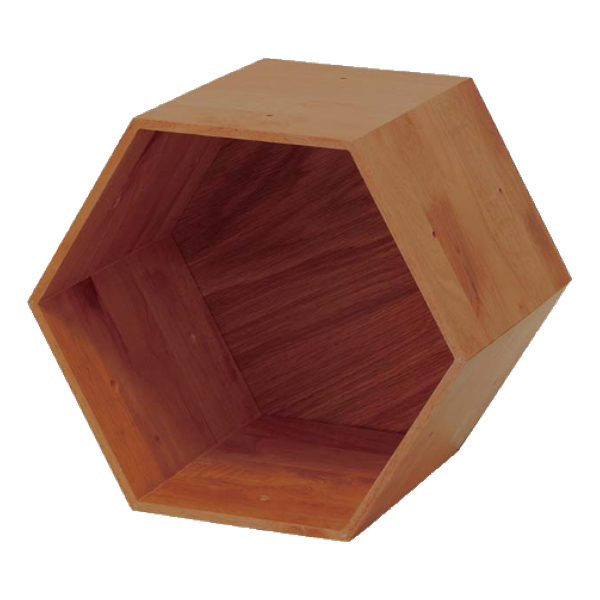 ●環境にやさしいラバーウッドの六角形が可愛いシェルフです。
